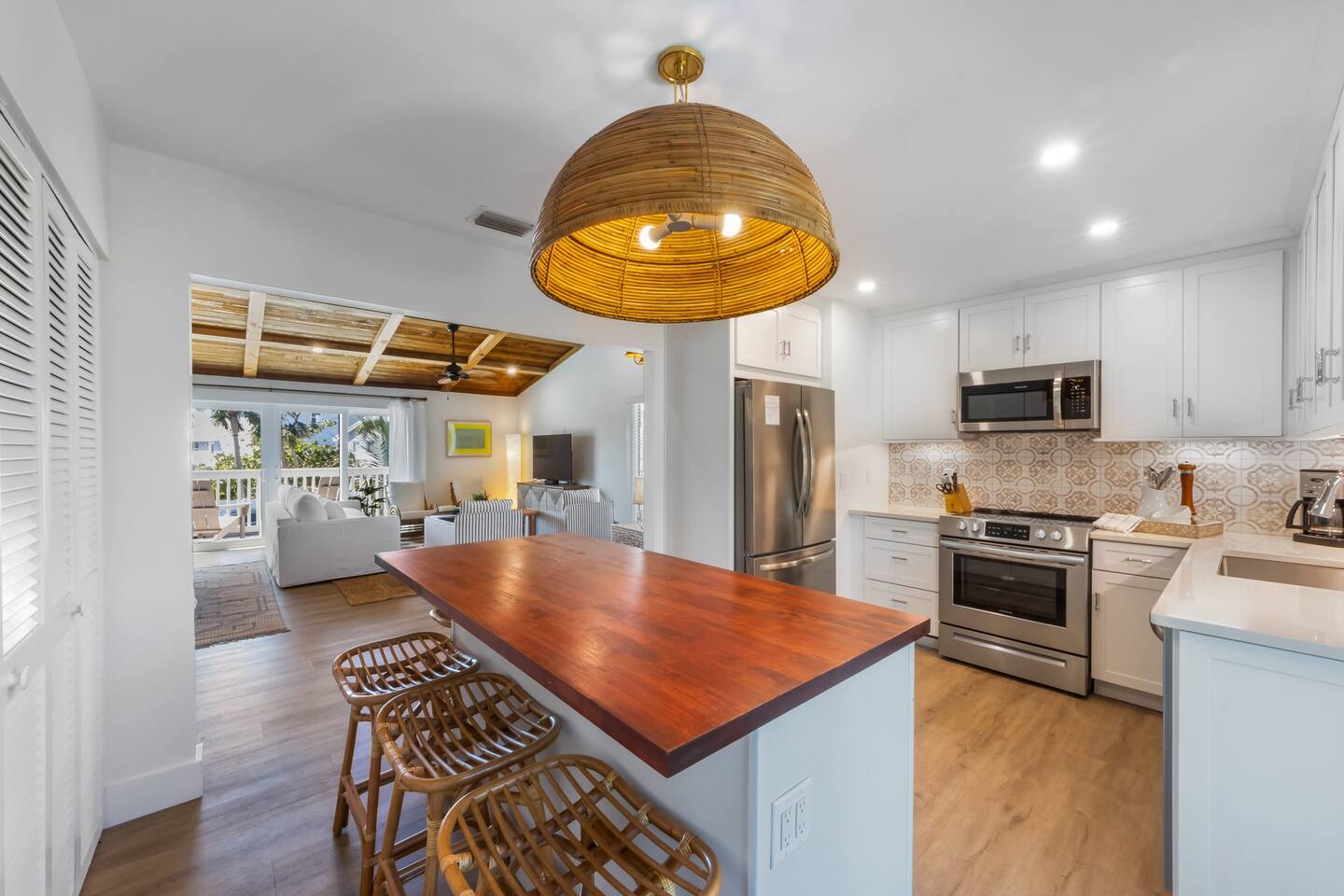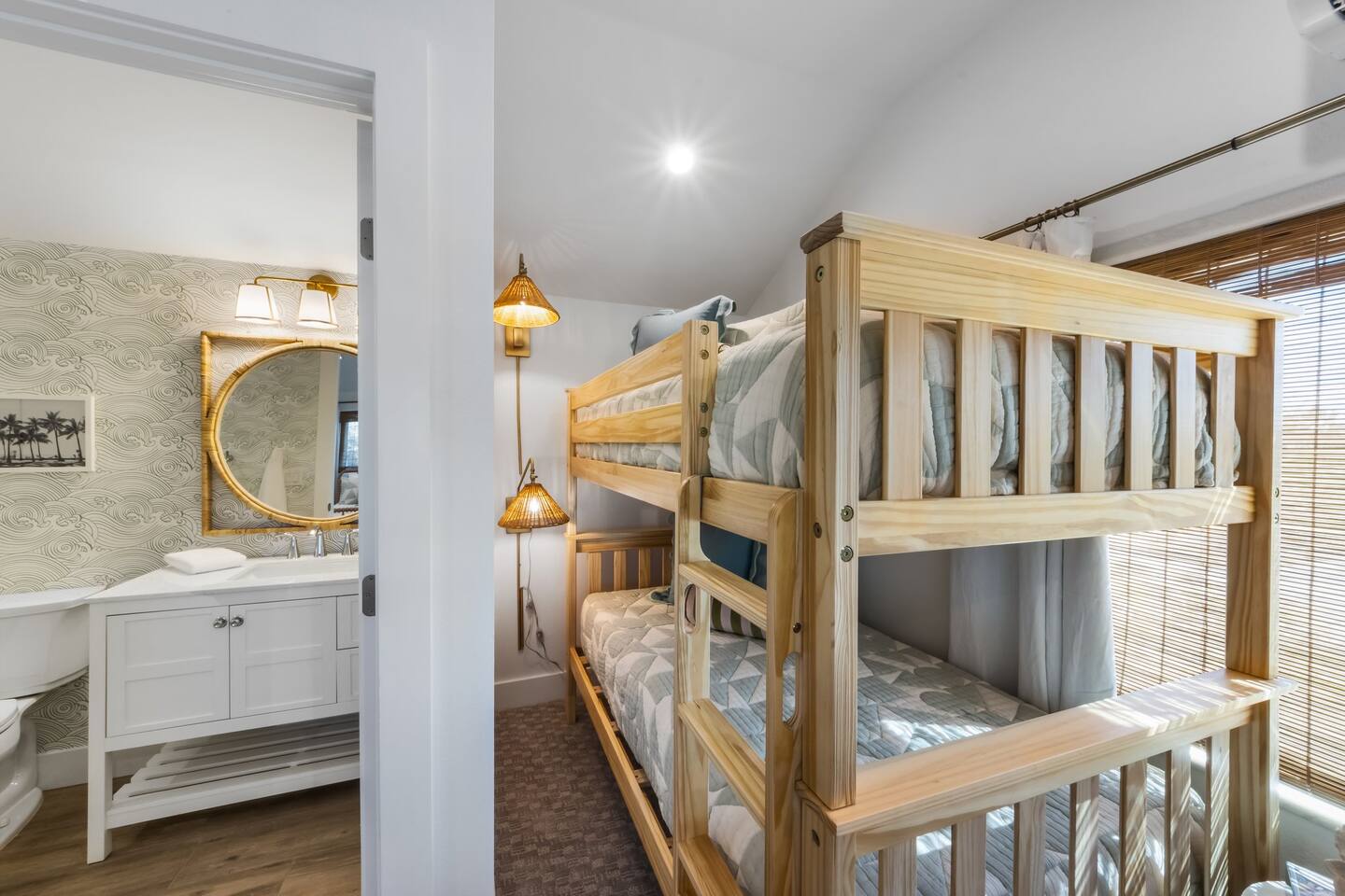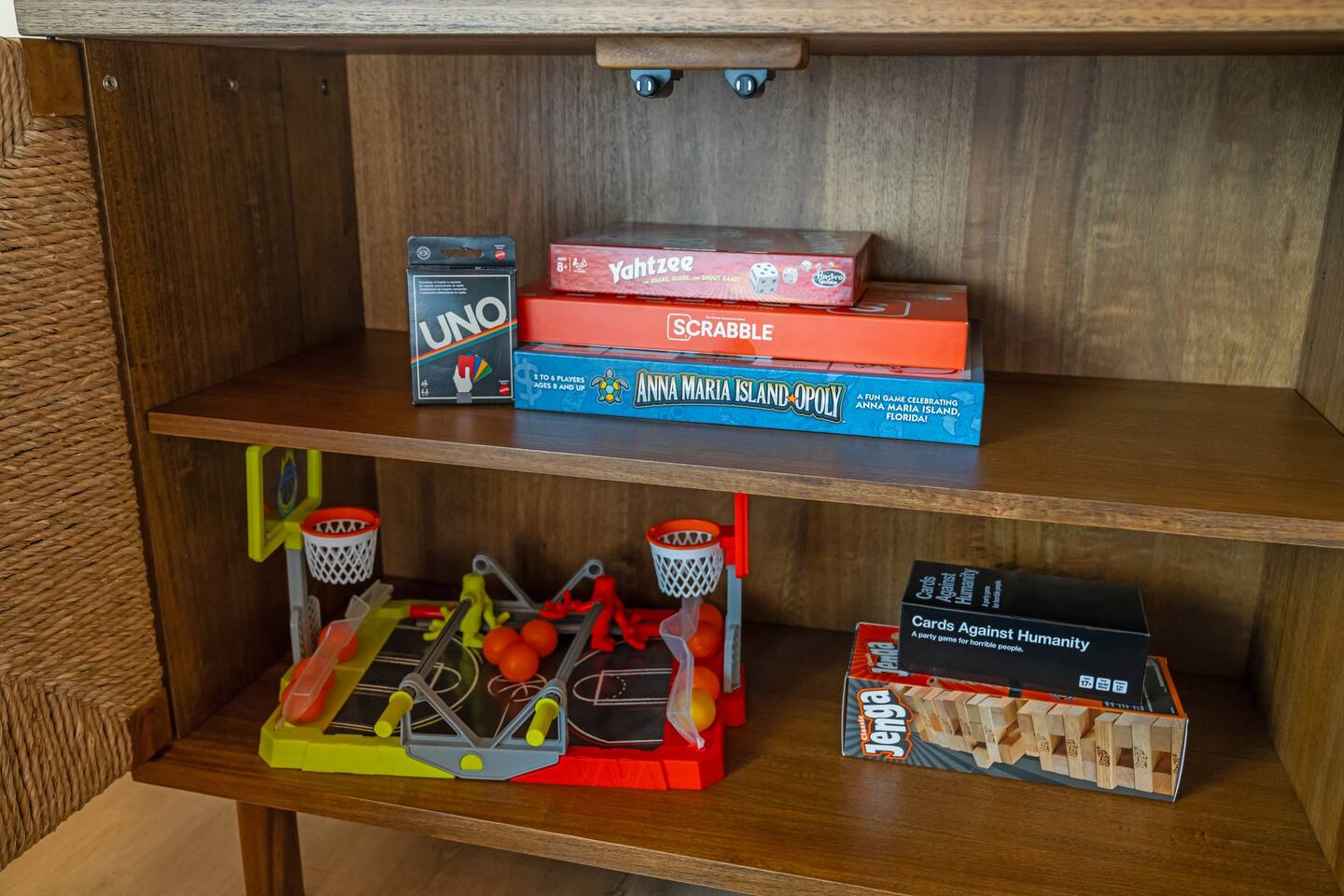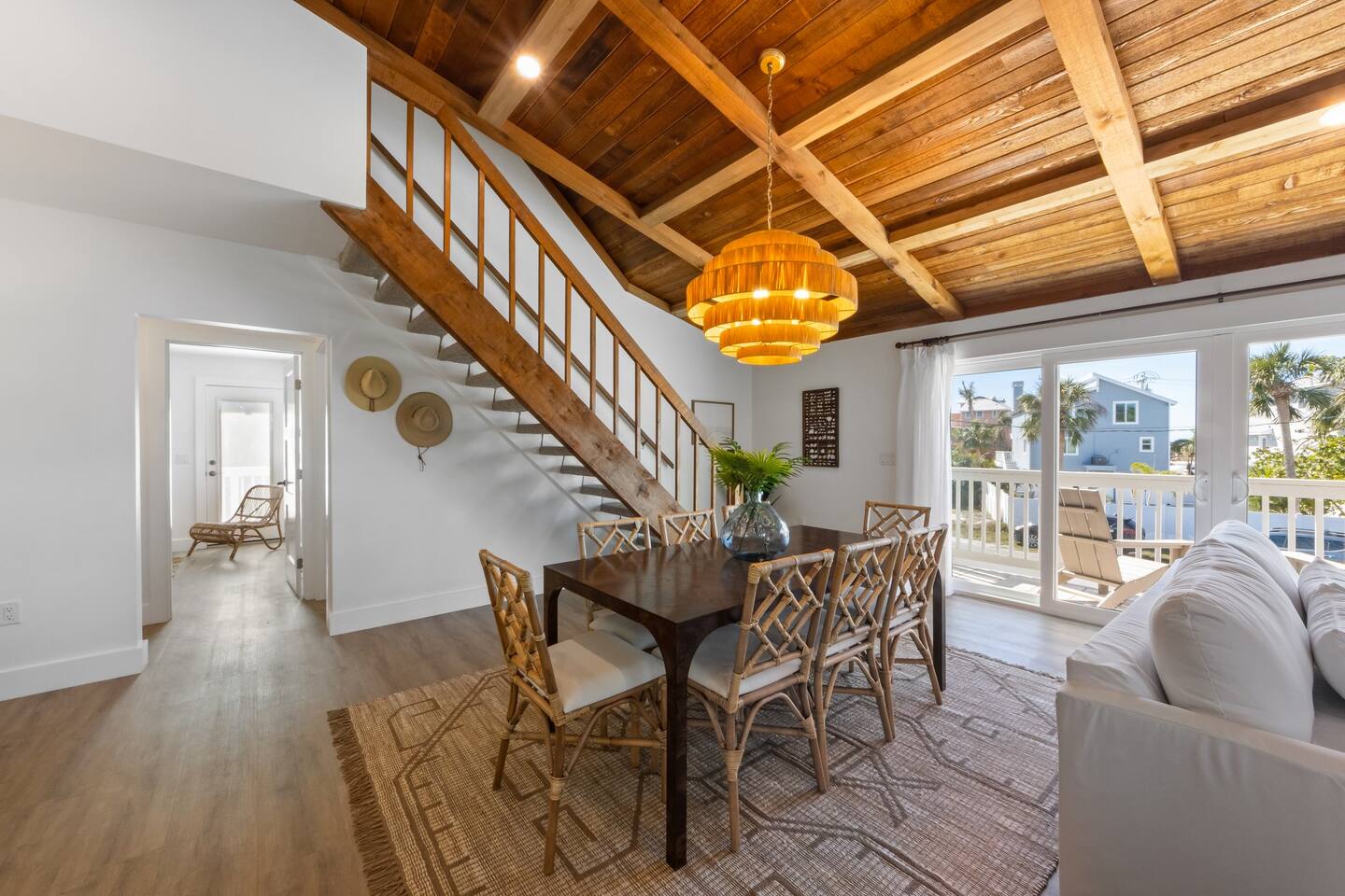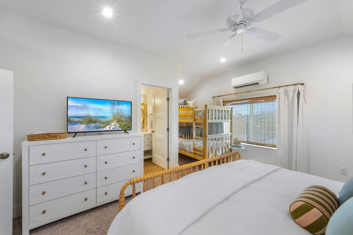 🏖️KEY FEATURES INSIDE🏖️ 🌴 3 luxurious bedrooms; 1 king, 1 king, and 1 king + twin bunk bed {all bedrooms complete with blackout curtains, luxury memory foam hybrid mattresses, organic bamboo sheets, organic linen duvet, organic cotton gauze layering blanket, both memory foam pillows & down alternative pillows on every bed for your best night’s sleep, ceiling fans, sound machines, and cell phone chargers} 🌴 3 full bathrooms 🌴 Fully stocked kitchen–cooking equipment, kitchen knives, utensils, spices, and coffee station 🌴 Washer & dryer 🌴 High speed Wifi 🌴 Central A/C + heat 🌴 55” & 40” Roku smart TVs 🏖️KEY FEATURES OUTSIDE🏖️ 🌴 Large, heated saltwater pool & spa w/ colored nighttime lights & overhead string lights 🌴 2 coconut palm tree-hung hammocks w/ pillows 🌴 3 hole putt putt course 🌴 Hot/cold water outdoor shower w/ in-shower palm tree for the ultimate tropical shower experience! 🌴 55” Roku smart TV & mini fridge under the house adjacent to the pool, tune in while you stay outside! 🌴 Propane grill 🌴 Waterproof Stiga ping pong table & life size Jenga 🌴 Fully fenced, totally private yard with luscious, tropical, mature foliage all the way around 🌴 6 poolside loungers 🌴 2 additional deep seating lounge spaces in the backyard, room for everyone to spread out 🌴 Front porch on upper level facing Gulf of Mexico w/ adirondacks, perfect for morning coffee or watching the sunset 🌴 Rear covered back porch on upper level off of kitchen for dining al fresco 🌴 Quiet location at the north end of AMI, walkable and bikeable to Gulf beach access, Pine or Gulf Ave 🏖️TO MAKE YOUR TRIP EASY WE PROVIDE🏖️ 🌴 Trip essentials--5 dishwasher pods, dish soap, hand soap, 5 laundry pods, trash bags, 2 rolls of paper towels, and 3 rolls of toilet paper/bathroom 🌴 Linens–Bed and bath linens, including pool/beach towels 🌴 Shower essentials—Shampoo, conditioner and body wash in every bathroom 🌴 Bikes–4 adult and 2 kids' Retrospec beach cruisers + 2 kids helmets (one kids' bike for ages 4-6, and one for ages 6-12) 🌴 Beach gear–8 beach chairs, beach towels, top of the line balloon-tire beach cart, Shibumi shade, traditional umbrella, cooler, cooler tote, ice packs, portable JBL speaker, 2 boogie boards, beach toys (frisbees, football, beach ball, kids buckets/shovels), shelling totes 🌴 Pool gear–Striped donut floats, 8 noodles, 1 adult + 2 kids’ goggles, pool toys (water guns, torpedoes, floating balls), baby pool float 🌴 Golf gear–Floating putting green for pool w/ chipping mat & foam balls, wedge, adjustable height putters, glow-in-the-dark golf balls 🌴 Baby/child gear–High chair, full size crib/mattress/sheets, sound machine + blackout curtains in every bedroom, kid’s step stool for bathroom, waterproof mattress covers, 4 memory foam toddler pillows if needed, kids plates/bowls 🌴 1 JBL portable, waterproof, sand proof speaker 🌴 Games & entertainment—Outdoor ping pong table, plenty of board games, cards, 1000 piece puzzle, and life size Jenga 🌴 Keyless entry door code 🌴 Custom beach playlist for our guests to enjoy with 40 hours (!!) of listening 🌴 Loads of recommendations for and direct connections to any experiences, activities, or food you may want during your stay 🏖️BEDROOMS & BATHROOMS🏖️ Each of the three bedrooms is designed with guest comfort in mind. Experience cloud-like comfort at bedtime {luxury memory foam hybrid mattresses, organic bamboo sheets, organic linen duvets, organic cotton gauze layering blankets, your choice of memory foam pillow or down alternative pillow} and wake up rejuvenated for another day in island paradise. Each room is also outfitted with woven bamboo shades, blackout linen curtains, a ceiling fan, a sound machine, and bedside cell phone chargers for your convenience. Layout: Two King bedrooms on the main level. Upper level is home to just the 3rd bedroom with both a King bed and twin bunk beds making this a perfect room for a couple, or 1-4 kids! The upstairs bedroom also has a 40” Roku smart TV. The main level has an en-suite bathroom with shower/tub combo, a hall bathroom for the second bedroom with shower, and the third full bathroom is ensuite to the upper-level bedroom with a large walk-in shower. All of the bathrooms are stocked with shampoo, conditioner, body wash, and plush organic towels. 🏖️MAIN LEVEL LIVING SPACE🏖️ The fully stocked kitchen offers stainless steel appliances, all the cooking equipment, utensils, kitchen knives, dishes and glassware you’d ever need, an array of spices, and coffee station. The roomy butcher block island is home to 4 counter stools. Glass sliders off of the kitchen open (or open to screens) to the upstairs covered porch where you can dine al fresco with a bird’s eye view of your private backyard oasis while enjoying the beautiful island sunshine. The open-concept main level of the home boasts high ceilings with exposed Florida Cedar paneling and beams and large sliding double doors which can be opened fully or with screens, engulfing the main level in tons of natural light; opening both the living room and kitchen sliders to screen doors creates an incredible Gulf breeze across the entire main level! Enjoy gorgeous sunsets from this large living room window over the Gulf. Luxe, deep sofa and chairs ensure everyone has a comfy place to hang out after a day at the beach; all upholstery in this space is performance so you can enjoy your vacation worry-free. Four large cotton gauze + fleece backed blankets make lounging in this space extra cozy, and on the flip side the ceiling fan provides a breeze when needed. Roku smart TV enables you to login to your favorite streaming services during your vacation. The TV console is stocked with games to keep your family and friends entertained no matter how you’d like to spend your time. The dining area adjacent to the living ro